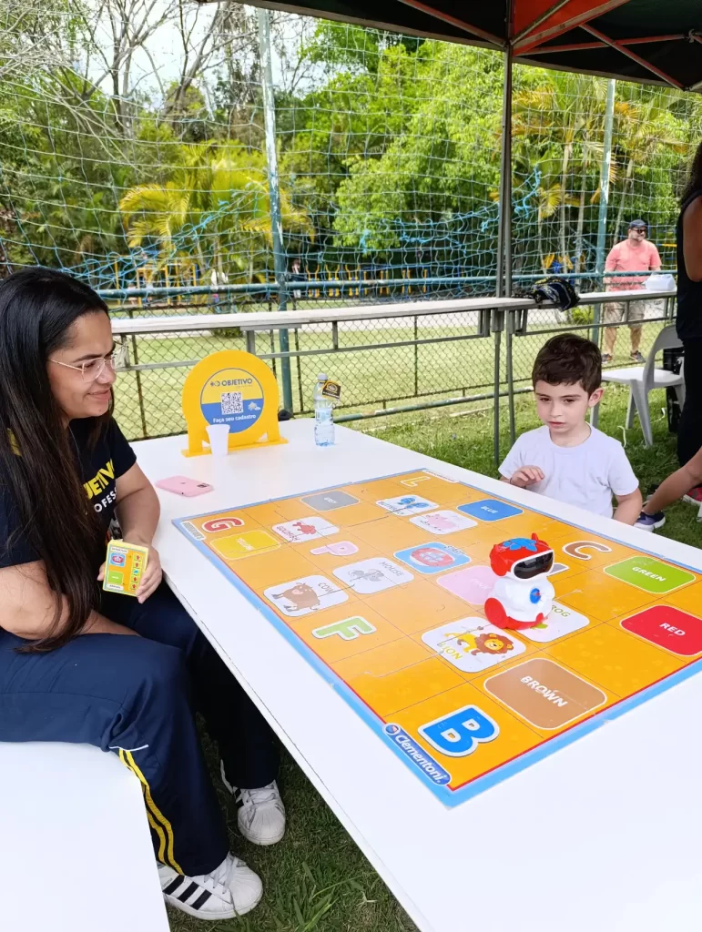 A participação da escola foi marcada por um contato direto com o público, promovendo atividades, trocas e conversas com as famílias, que puderam conhecer de perto a proposta pedagógica do Objetivo.
